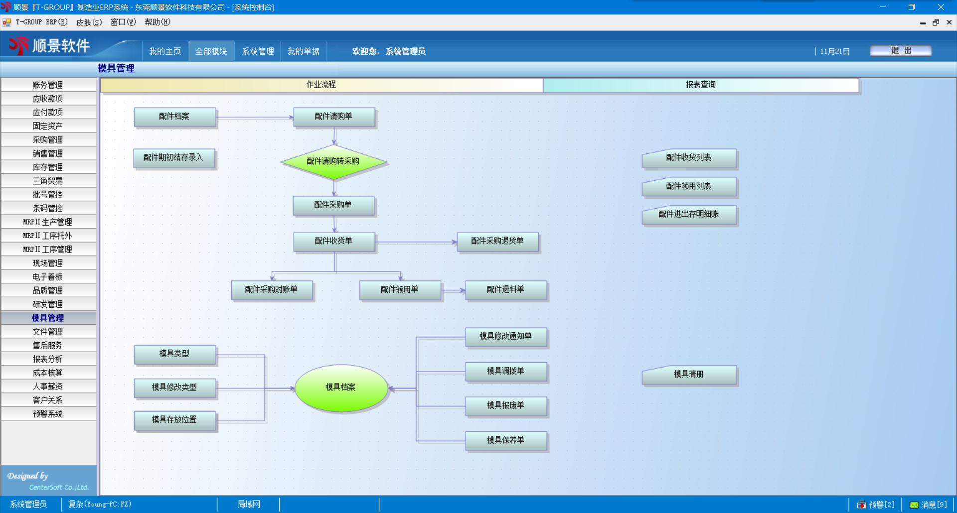 8.   模具管理清册,根据模具档案、模具调拨单、模具报废单最后形成模具清册,便于管理模具。